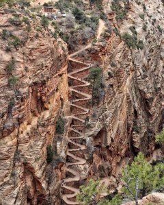 After we crossed the plateau – you guessed it – we had another descent. This time it would take at least three hours with about a 60-degree angle before we would reach the end of the trail at Zion Lodge. We took switchback after switchback along a ledge of the trail. I kept thinking, “Lean into the cliff. Lean into the cliff.” I kept praying for God to carry me to ease my pain. Then Robyn gave me her poles to use so I could take more weight off my knee. Then someone carried my pack. I had no idea who had my pack but when I need water someone appeared with my pack. When I needed electrolytes, someone would appear with my water bottle.